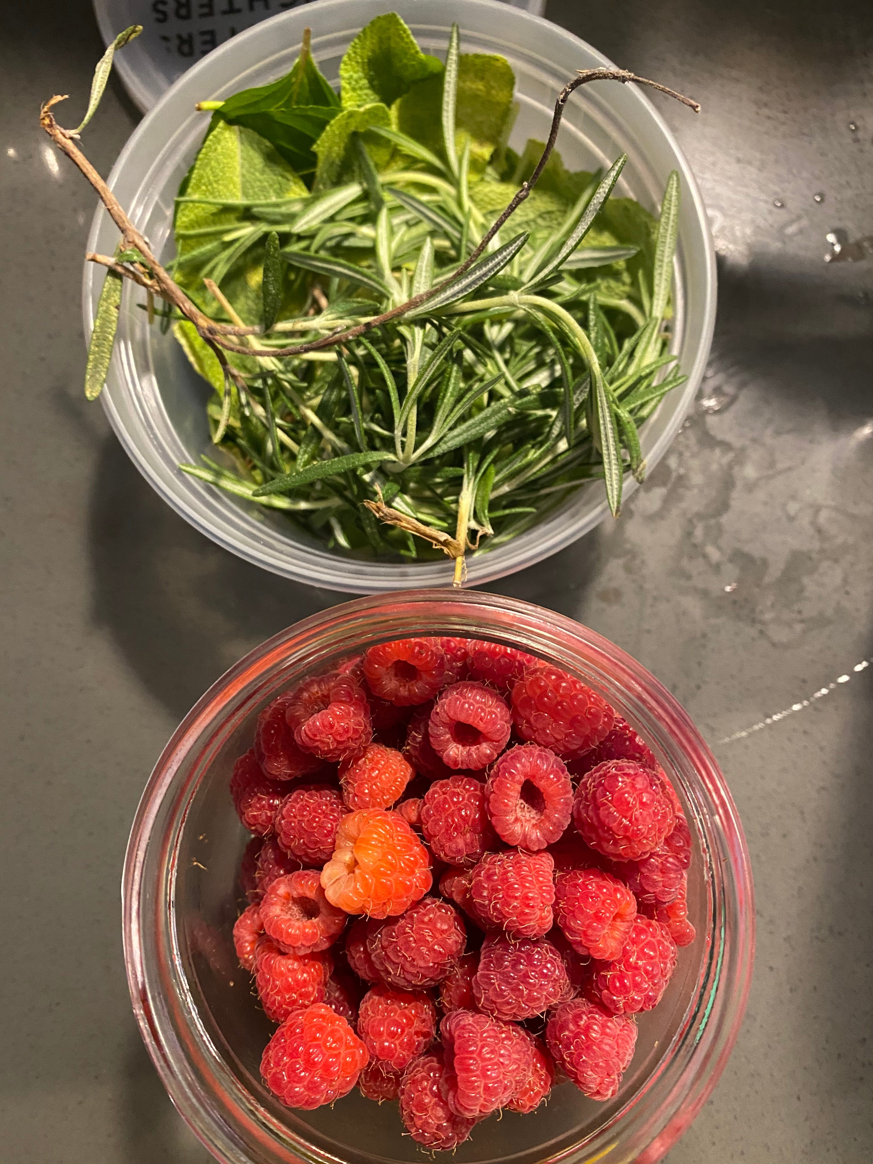 I am tending to an absent friend’s backyard raspberry bush right now, which means I’m a bit scratched up but also have a lot of raspberries at my disposal. I also have a lot of strawberries, thanks to our local CSA, and a bunch of blueberries from my new BFF Imperfect Foods.